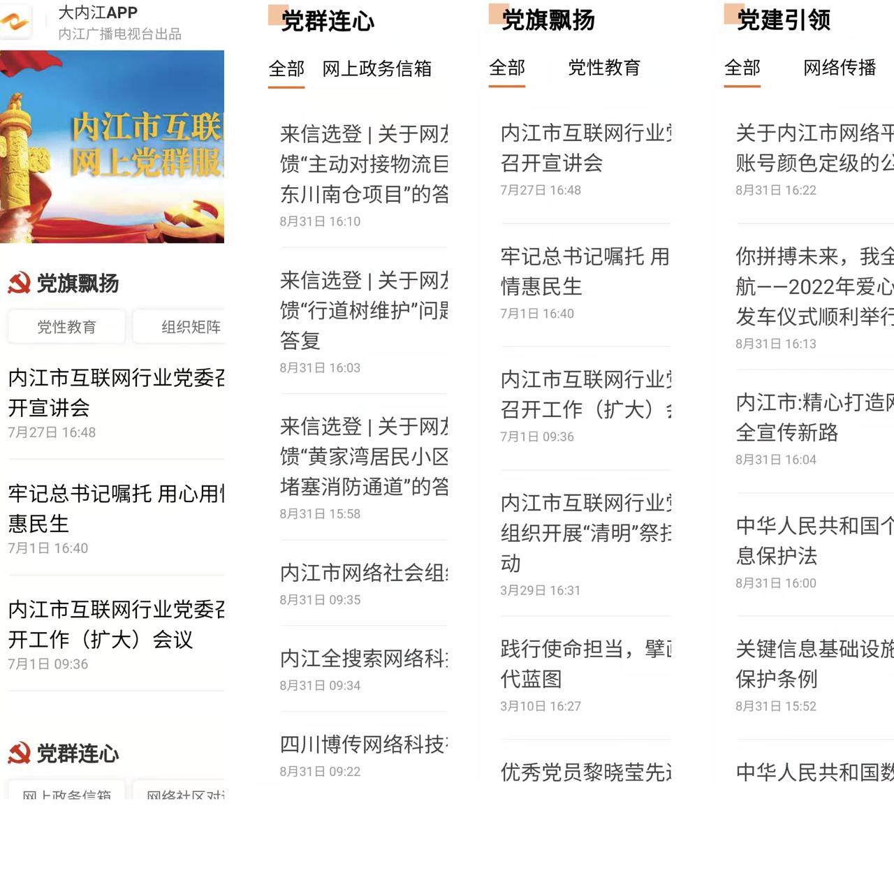 2022年7月,內(nèi)江市互聯(lián)網(wǎng)行業(yè)黨委召開工作(擴(kuò)大)會議,討論市互聯(lián)網(wǎng)行業(yè)網(wǎng)上黨群服務(wù)中心建設(shè)方案。經(jīng)過多方論證和修改完善,內(nèi)江市互聯(lián)網(wǎng)行業(yè)網(wǎng)上黨群服務(wù)中心于9月5日正式上線。中心以“黨旗飄揚(yáng)”宣傳普及黨務(wù)知識、以“黨群連心”暢通政企對話渠道、以“黨建引領(lǐng)”推動企業(yè)健康發(fā)展。網(wǎng)上黨群服務(wù)中心準(zhǔn)確把握互聯(lián)網(wǎng)行業(yè)發(fā)展特點(diǎn),以“互聯(lián)網(wǎng)+黨建”形式加強(qiáng)互聯(lián)網(wǎng)企業(yè)“黨性教育”,是對非公有制企業(yè)黨建工作的一次有益探索,解決了互聯(lián)網(wǎng)企業(yè)黨員教育學(xué)習(xí)、黨組織活動開展、黨建工作指導(dǎo)等具體問題,大大提升了互聯(lián)網(wǎng)企業(yè)黨組織創(chuàng)造力、凝聚力、戰(zhàn)斗力。