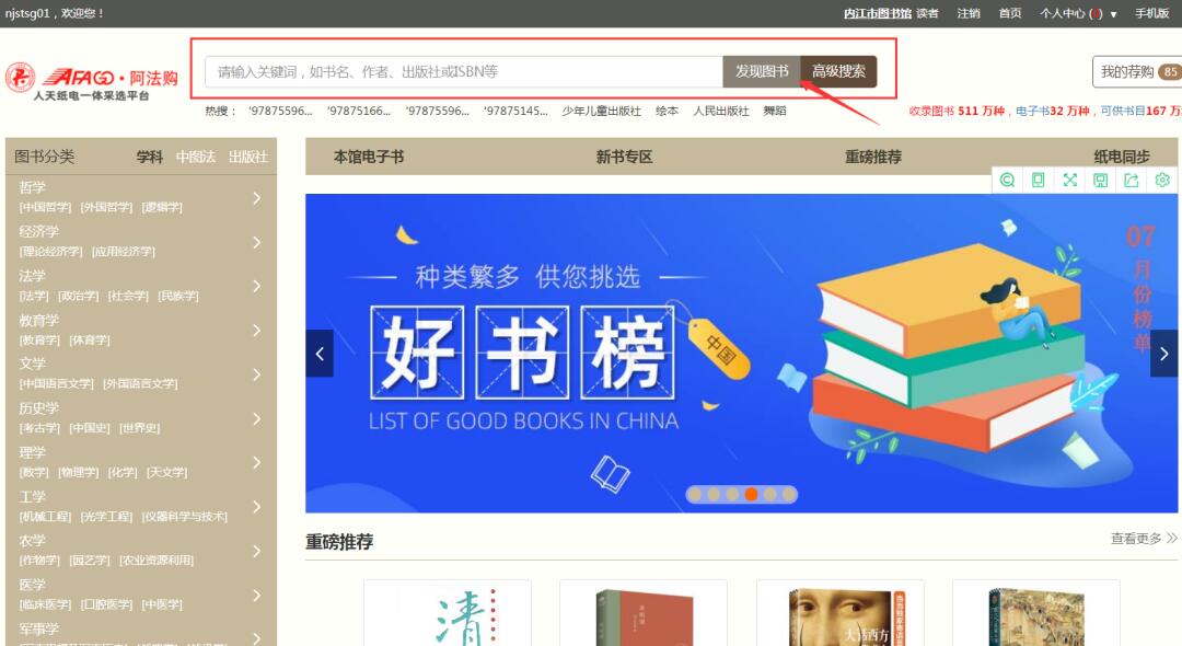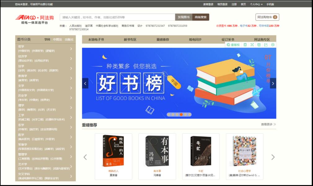 根據(jù)圖書分類或通過關(guān)鍵字、出版社、作者、ISBN進(jìn)行資源檢索和查找
