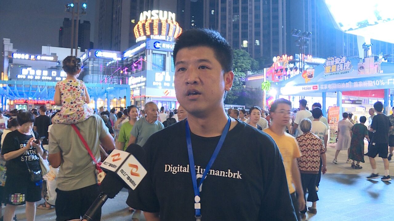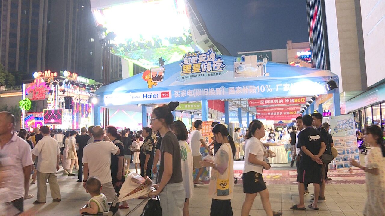 傍晚7點30分,萬晟天街外廣場上,熒光閃爍,隨著暖場音樂響起,現(xiàn)場氣氛逐漸升溫,前來參與活動的市民絡(luò)繹不絕,大家選家電、看表演、逛商場,場面十分熱鬧。
