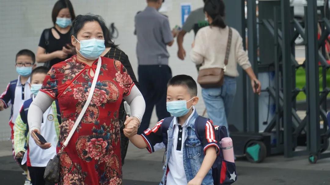 小學(xué)一年級的新生家長們,則是在學(xué)校門口掃描場所碼、出示四川天府健康通健康碼及新冠疫苗接種記錄后進(jìn)入校園,大家全程佩戴口罩,現(xiàn)場秩序井然。
