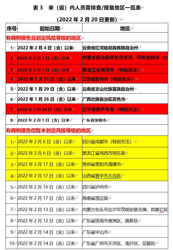 重點地區(qū)來(返)內(nèi)人員請主動報備