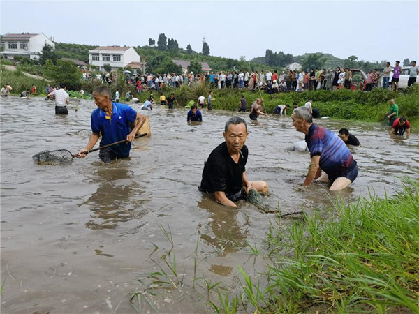 早已搶占好最佳位置準(zhǔn)備一展身手的村民,紛紛以最快的速度下入塘中,奮力“追捕”著水下機(jī)靈躲避的魚群。各家躍躍欲試的“女將”也不甘落后,紛紛加入其中,激烈的競(jìng)技使得現(xiàn)場(chǎng)人氣異常火爆。