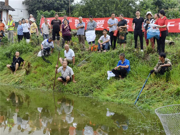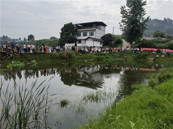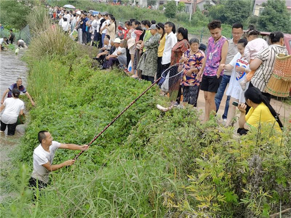 6月2日上午,內(nèi)江市資中縣銀山鎮(zhèn)金紫鋪村8組的一處魚塘邊,“2022‘粽’愛金紫鋪端午趣味捕魚活動(dòng)”熱鬧進(jìn)行,一聲高過(guò)一聲的加油吶喊聲和熱烈的歡呼聲響徹田間。