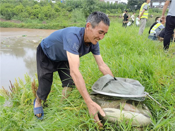 活動(dòng)現(xiàn)場(chǎng),隨著400余斤草魚被倒入魚塘各自游散,趣味捕魚“競(jìng)技”活動(dòng)隨之拉開序幕。