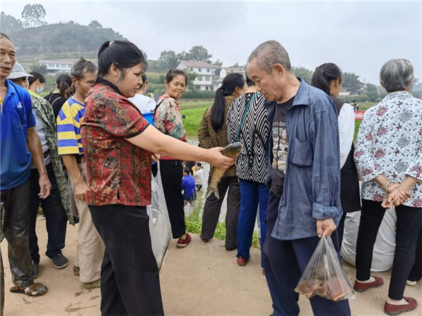 “這么熱鬧的活動(dòng),即使沒(méi)搶到也非常開心,沒(méi)想到還能收獲4條魚、兩只鴨子,都是女兒抓回來(lái)的,今天中午的燒魚可有得享受了。”村民王愛華一手提著裝魚的袋子,一手抓著兩只鴨子,滿面笑容地往家走,途中還將一條肥魚熱情地分享給前來(lái)“觀戰(zhàn)”的鄰居,共享節(jié)日歡樂(lè)氣氛。