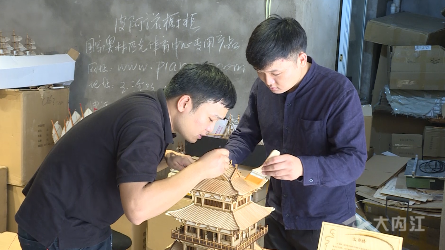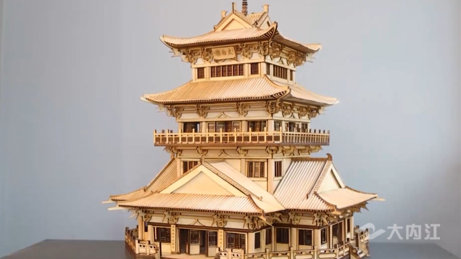 高手在民間!內(nèi)江95后雙胞胎手工復刻太白樓