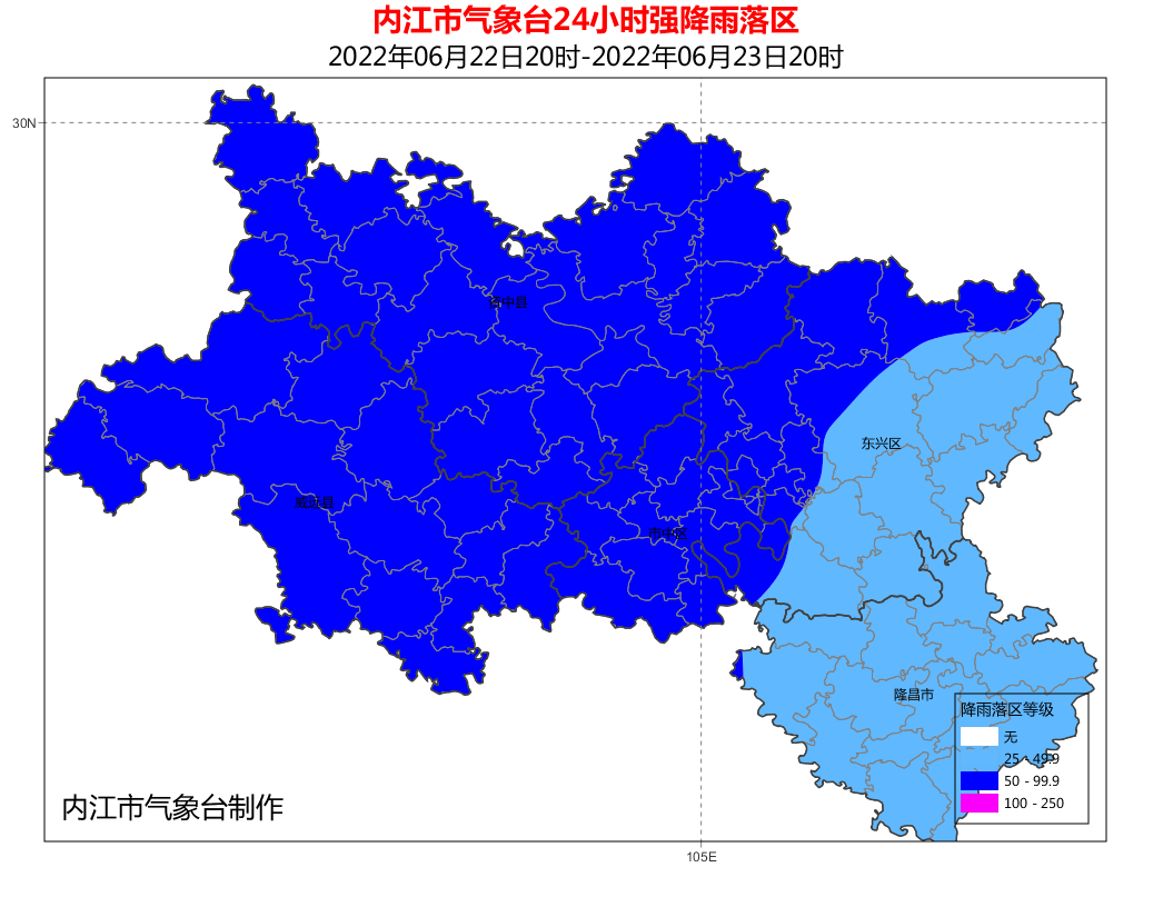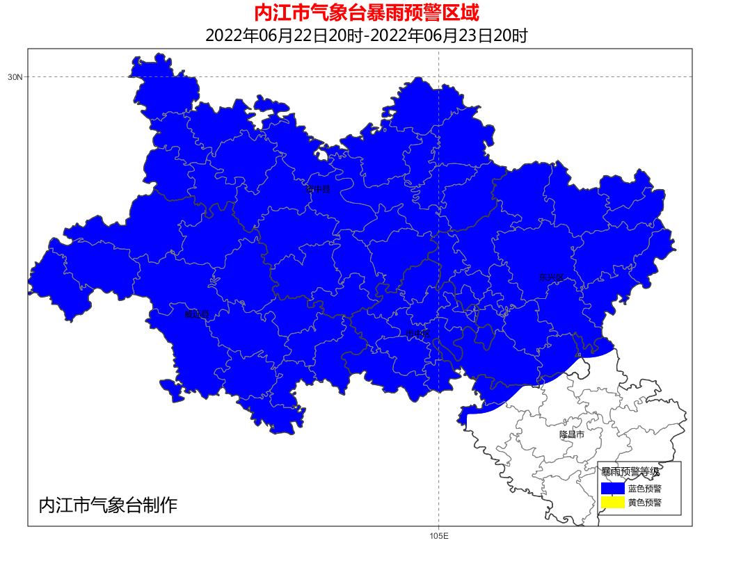 內(nèi)江市氣象臺(tái)6月22日15時(shí)發(fā)布暴雨藍(lán)色預(yù)警: