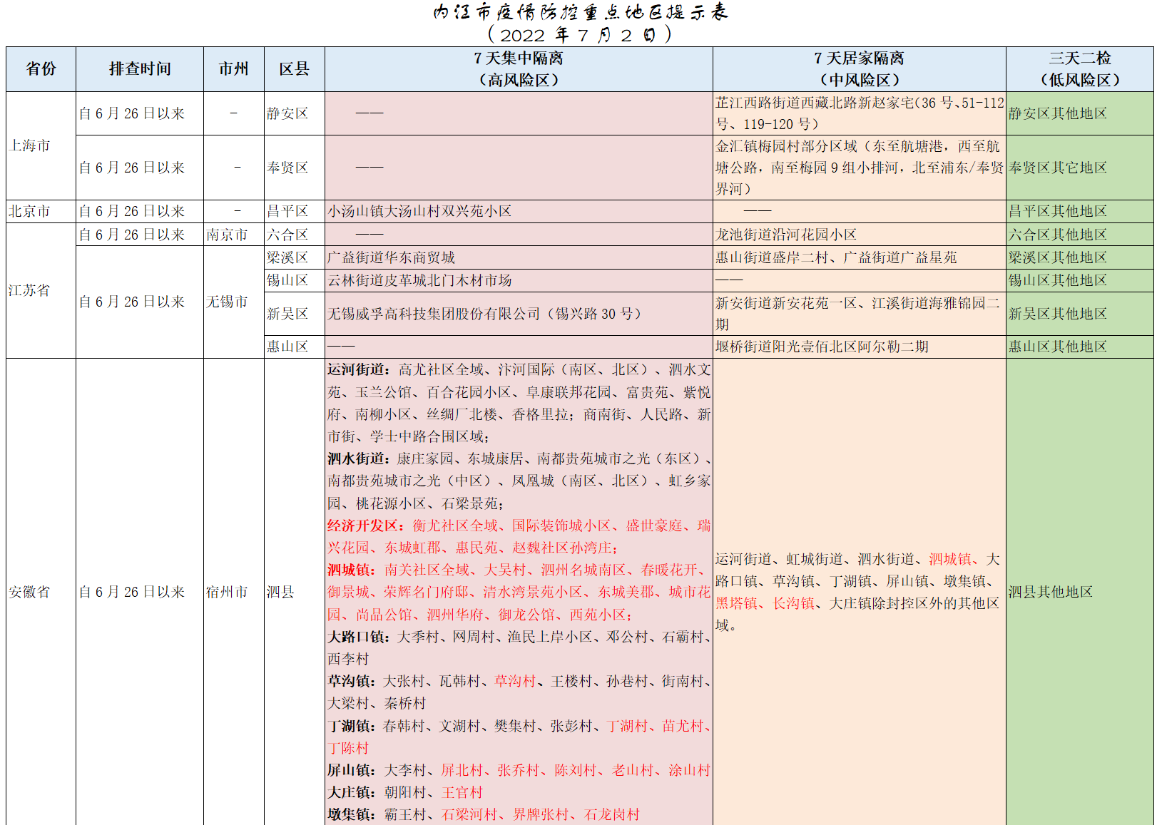 內(nèi)江市疫情防控重點(diǎn)地區(qū)提示表(2022年7月2日)