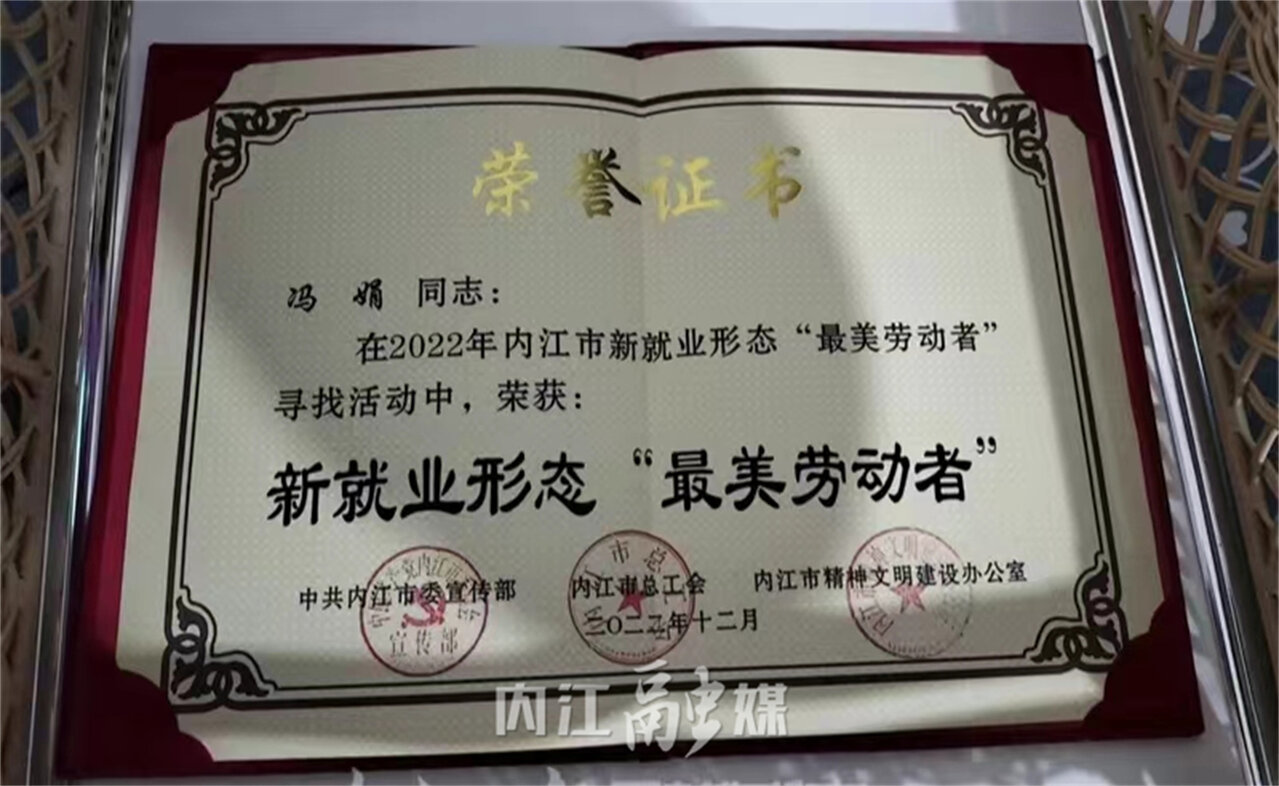 ▲馮娟榮獲新就業(yè)形態(tài)“最美勞動者”