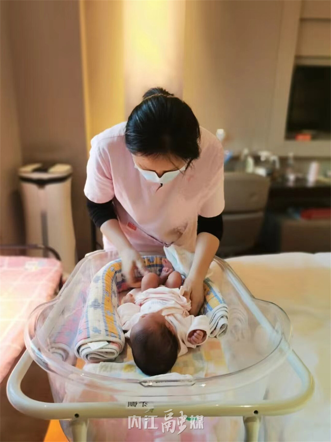 ▲內(nèi)江市愛君緣源家庭服務(wù)有限公司月嫂 馮娟(右)