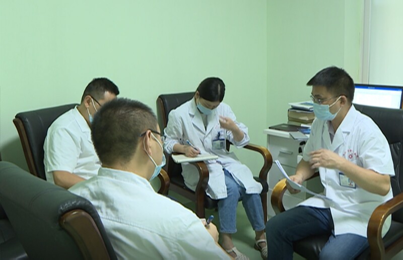 內(nèi)江市中醫(yī)醫(yī)院肛腸科主任朱建偉與團(tuán)隊(duì)討論病例