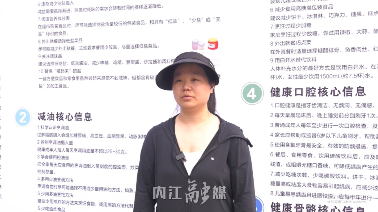 “通過今天這個三減三健的活動,我學(xué)到了平時要少油少鹽少糖,健康骨骼、健康口腔,我平時在生活中要少吃甜食,少吃油膩的食物,要清淡飲食,多運動?!笔忻?廖永紅向記者說道。