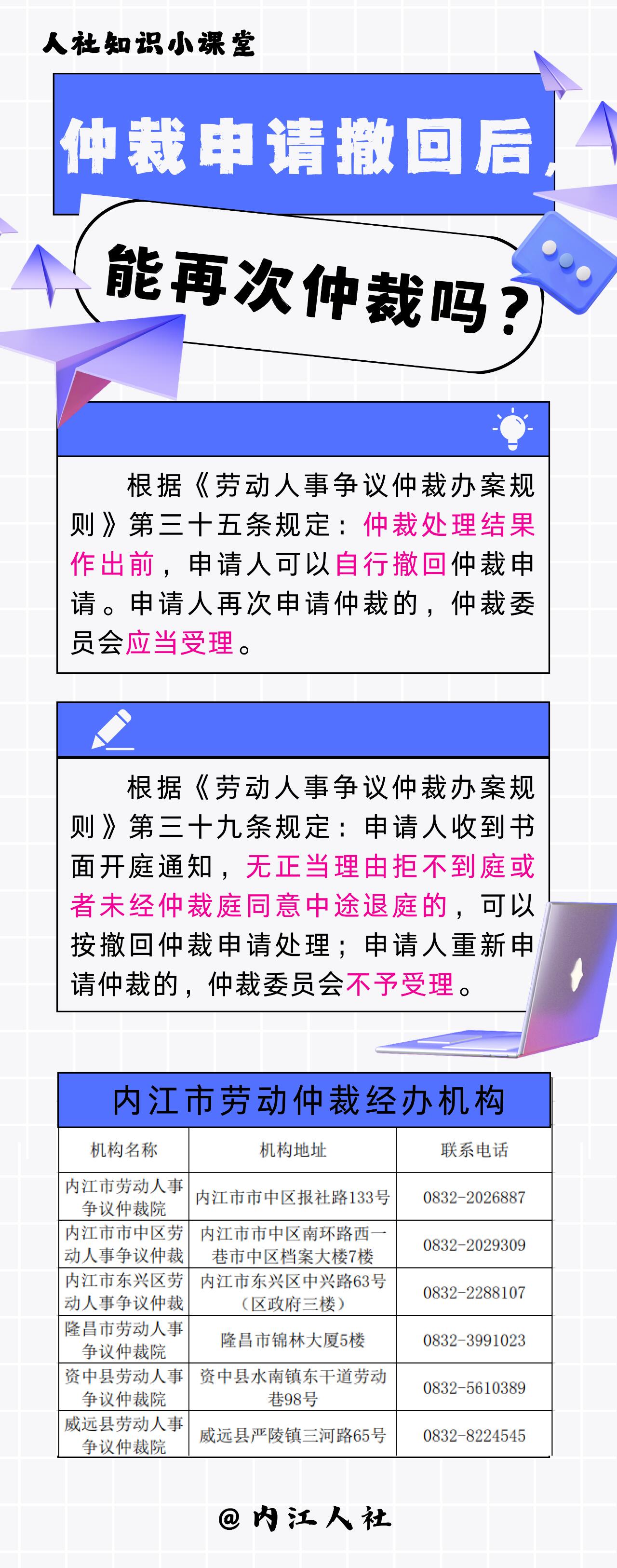?人社知識小課堂丨仲裁申請撤回后能再次仲裁嗎?