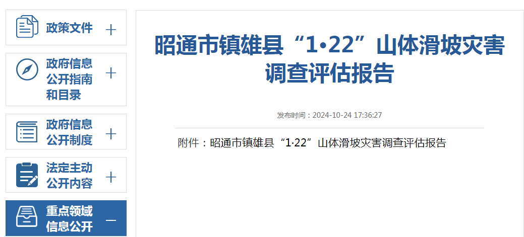 調(diào)查認(rèn)定,昭通市鎮(zhèn)雄縣“1·22”山體滑坡災(zāi)害,是位于高陡地形上的層狀碎裂巖體,在強(qiáng)烈的風(fēng)化卸荷及長(zhǎng)期降水入滲、反復(fù)的凍脹冰劈等因素影響下,突遇氣溫驟降伴隨雨雪等局地小氣候,導(dǎo)致臨界穩(wěn)定態(tài)滑源巖體結(jié)構(gòu)失穩(wěn),誘發(fā)突發(fā)性山體滑坡,造成重大人員傷亡和經(jīng)濟(jì)損失的自然災(zāi)害。其規(guī)模級(jí)別為中型滑坡,災(zāi)情等級(jí)屬特大型災(zāi)害范疇。