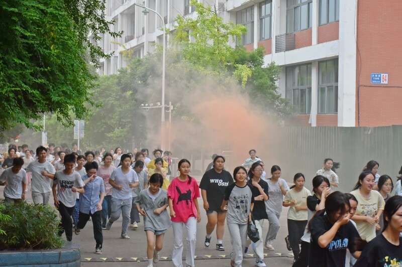 下午5時許,尖銳的警報聲劃破校園的寧靜,濃密的煙霧迅速彌漫樓道,一場逼真的防空襲疏散演練隨之拉開序幕。學(xué)生們聞聲而動,在指揮員的指引下,從不同樓層撤離出來,沿預(yù)定疏散路線快速、有序地穿過彌漫的硝煙,向?qū)W校操場指定區(qū)域疏散,并通過大巴車轉(zhuǎn)移至附近的人防工程。盡管這只是一場演練,但所有參與人員嚴(yán)肅認(rèn)真,聽從指揮,將演練視作真實(shí)情況,嚴(yán)格按照預(yù)定的疏散路線和要求行動,確保了演練的安全和順利進(jìn)行。