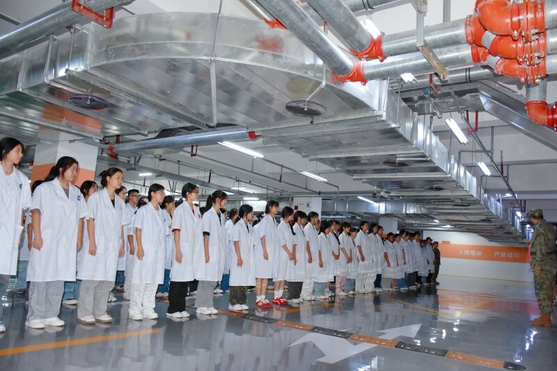 為了讓學(xué)生們在面對空襲等突發(fā)事件時能夠更好地保護(hù)自己,活動還特別設(shè)置了技能培訓(xùn)環(huán)節(jié)。在人防工程內(nèi)部,來自內(nèi)江市人民政府國防動員辦公室的宣教人員詳細(xì)講解了該工程的防護(hù)功能和人防基礎(chǔ)知識,并現(xiàn)場演示了防毒面具佩戴、專業(yè)防護(hù)服穿脫以及應(yīng)急物資取用等關(guān)鍵技能,讓學(xué)生們在沉浸式互動體驗(yàn)中了解人防、重視人防、熱愛人防、建設(shè)人防。