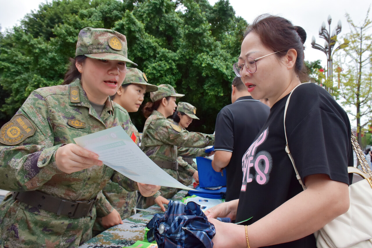在大千園廣場的集中宣傳點位,活動通過全市警報統(tǒng)一試鳴、國防動員知識科普、疏散演練視頻展播等多種形式,打造了沉浸式、立體化的宣傳矩陣,吸引了不少市民參與活動。