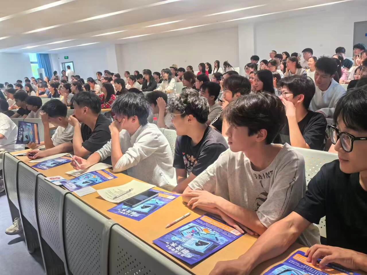 本次活動在學校階梯教室舉行,現(xiàn)場座無虛席。學生們?nèi)陶J真聆聽,在互動問答環(huán)節(jié)積極提問,圍繞“如何辨別非法中介”“校園貸與正規(guī)助學貸款的區(qū)別”等問題與工作人員深入交流,進一步加深了對金融安全知識的理解。