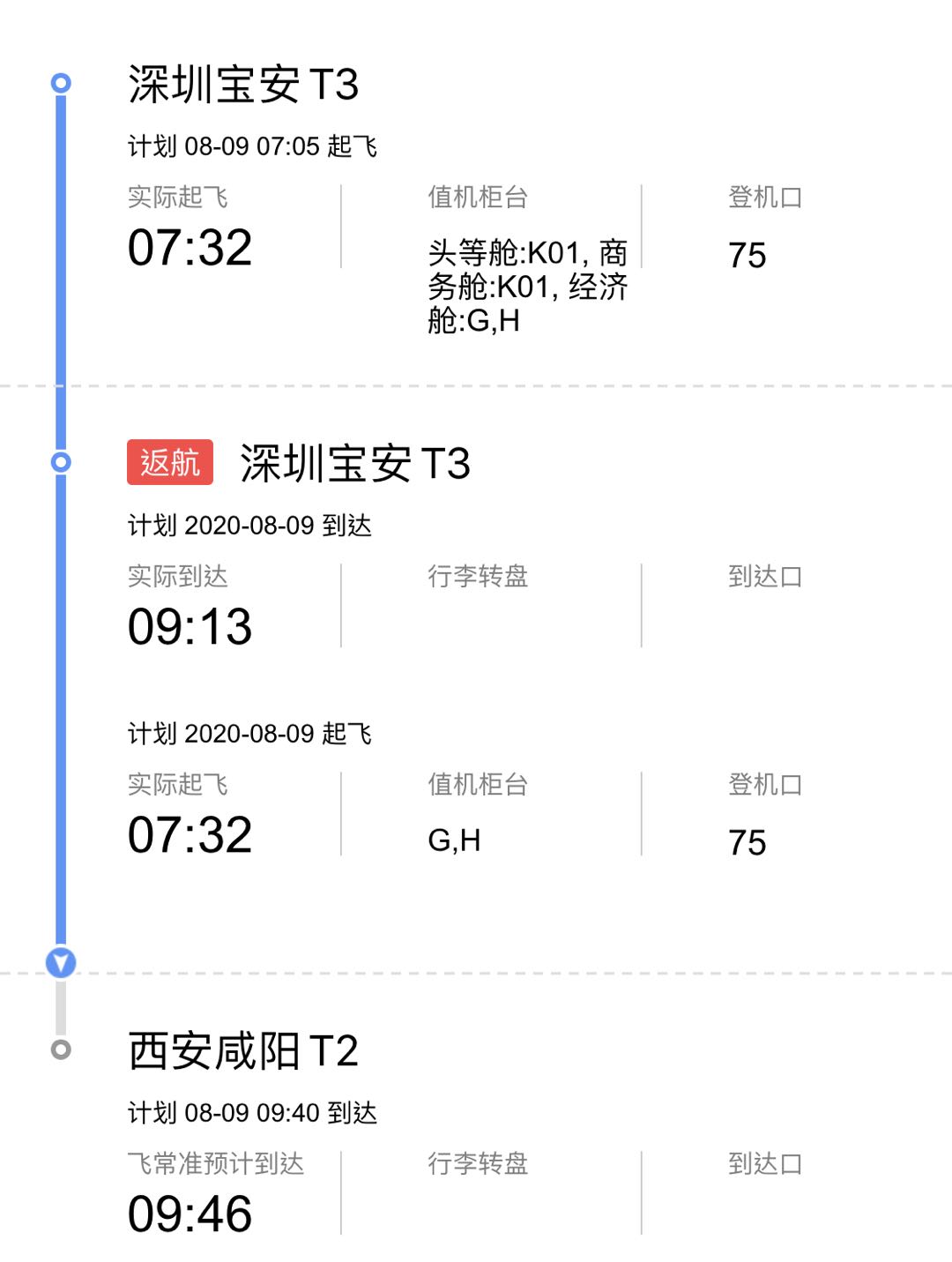 截至8月9日11時14分,記者通過“飛常準(zhǔn)”獲悉,該航班已于9時13分返航至深圳寶安機場,原本該航班預(yù)計是9時40分抵達(dá)西安。