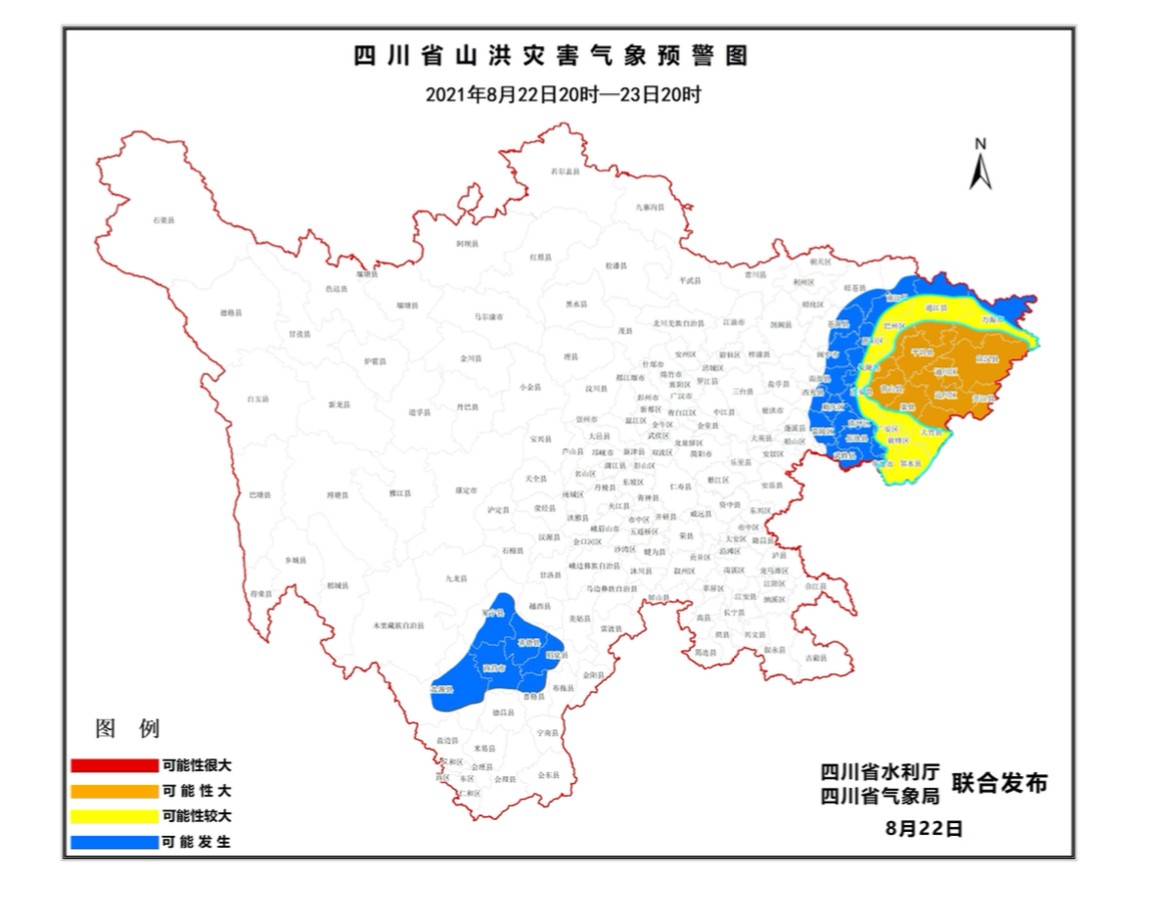 時(shí)間:2021-08-22 17:48:47 來(lái)源:四川觀察8月22日17時(shí),四川省水利廳聯(lián)合四川省氣象局發(fā)布山洪災(zāi)害橙色預(yù)警,22日20時(shí)至23日20時(shí),通川、達(dá)川、宣漢、開(kāi)江、萬(wàn)源、大竹、渠縣、巴州、平昌、通江、儀隴、營(yíng)山等縣(市、區(qū))發(fā)生山洪災(zāi)害可能性大(橙色);廣安、前鋒、鄰水、華鎣、恩陽(yáng)、南江、蓬安等縣(市、區(qū))發(fā)生山洪災(zāi)害可能性較大(黃色);西昌、冕寧、鹽源、喜德、昭覺(jué)、普格、武勝、岳池、嘉陵、高坪、順慶、西充、南部、閬中、蒼溪、旺蒼等縣(市、區(qū))可能發(fā)生山洪災(zāi)害(藍(lán)色)。