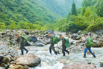 時間:2021-08-27 15:14:21 來源:四川日報8月25日,大熊貓國家公園四川片區(qū)大邑區(qū)域,大蒜坪管護站的巡護隊員在渡河。
