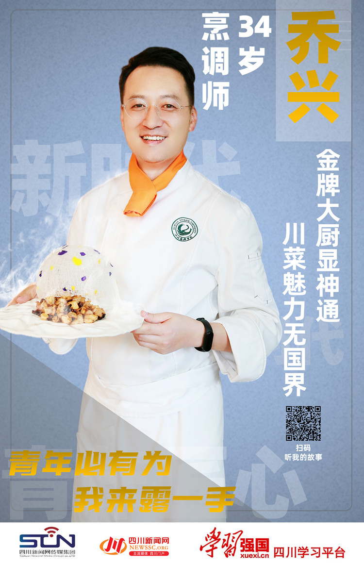 今年34歲的喬興,在四川旅游學院烹飪學院任教。他是世界廚師聯(lián)合會任命的無國界大使、中國第一屆職業(yè)技能大賽(西餐項目)裁判、國際認證烹飪裁判,還曾在眾多比賽中屢獲大獎:第八屆世界中餐大賽金獎、中國首屆泡菜烹飪大賽金獎、全國烽火杯教育成就獎、第三屆國際青年學生烹飪大賽團體金獎……