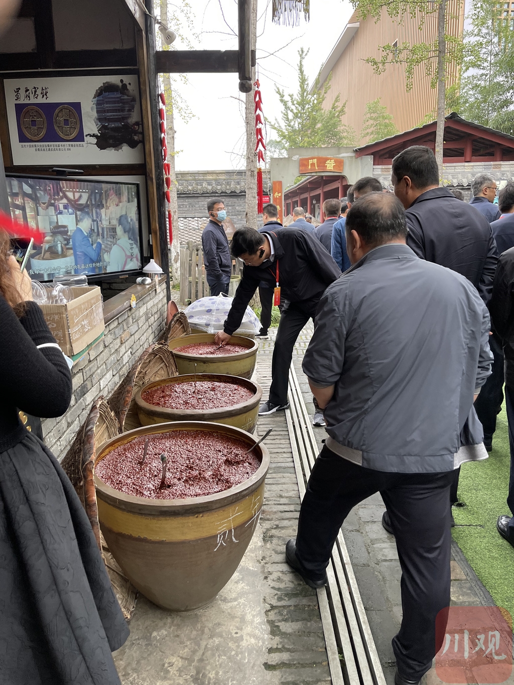 現(xiàn)場教學(xué)的第一站,來到了成都市郫都區(qū)唐昌鎮(zhèn)戰(zhàn)旗村。學(xué)員們走進(jìn)古色古香的川西街巷,踏在蜿蜒的青石板路上,兩旁是黛瓦白墻搭配褐色的雕花木質(zhì)門窗,一抬頭,每個屋檐下掛著紅燈籠,頭頂裝飾的五彩遮陽傘輕輕隨風(fēng)飄蕩,鼻間則是郫縣豆瓣醬綿密的醬香。