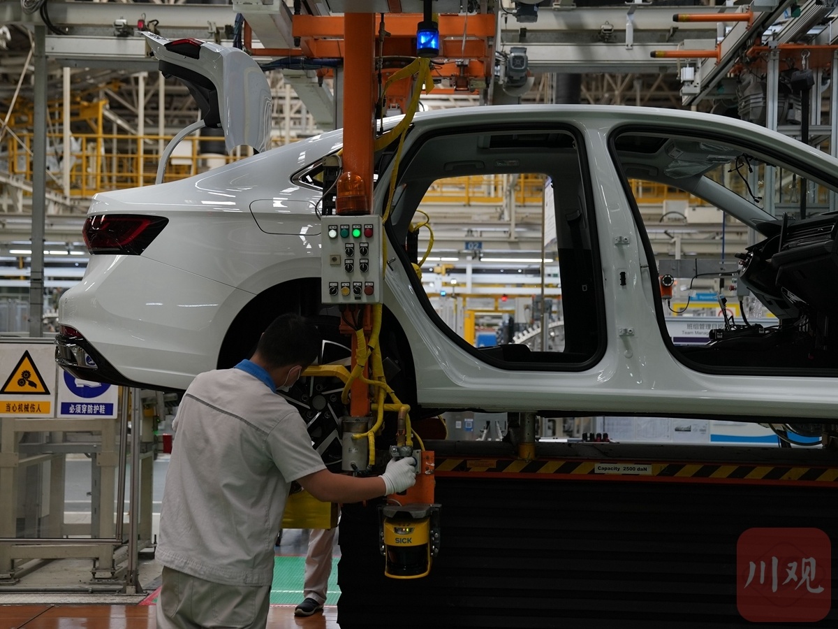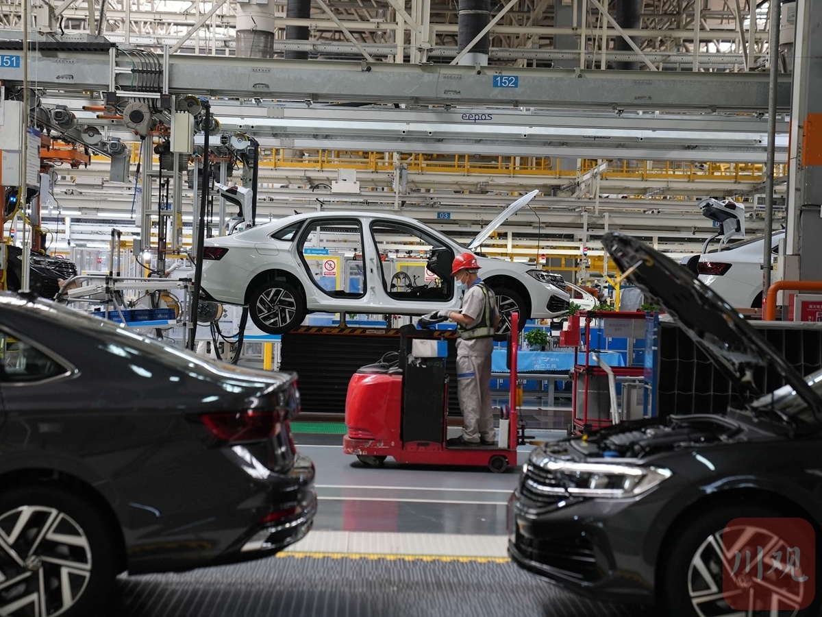 △一汽-大眾成都分公司總裝車間生產(chǎn)現(xiàn)場(chǎng)。