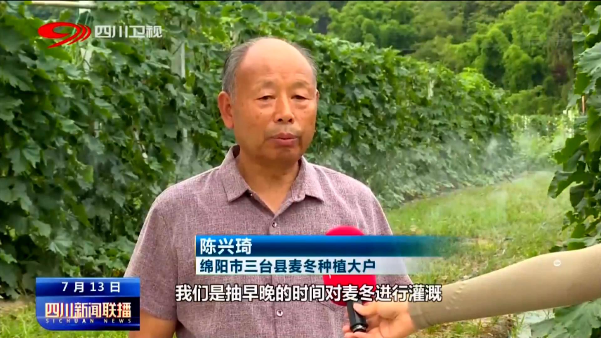 綿陽市三臺(tái)縣麥冬種植大戶 陳興琦:天氣很炎熱,我們是抽早晚時(shí)間對(duì)麥冬進(jìn)行灌溉,為了保證麥冬的正常生長(zhǎng),我們套種了玉米和蔬菜,這樣可以給麥冬遮陰。