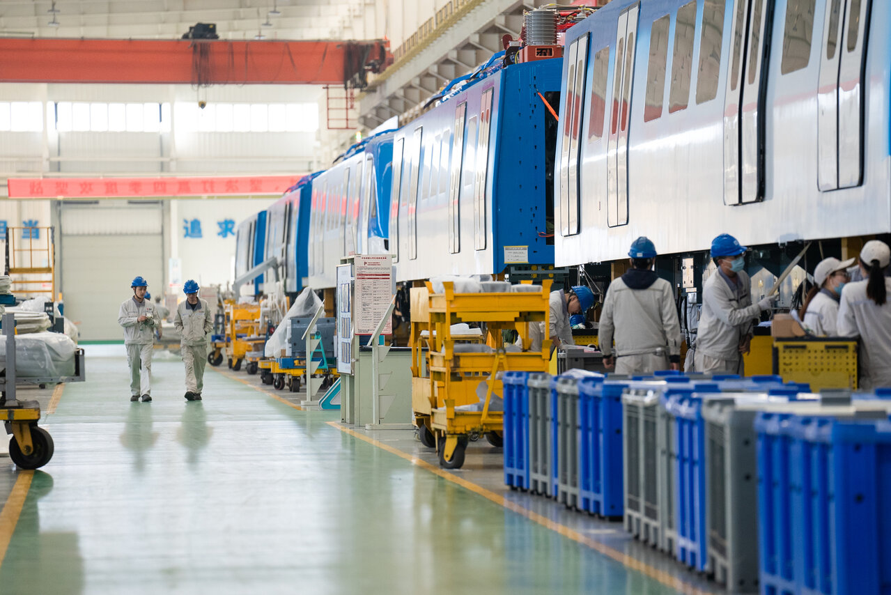 中車成都公司城軌總裝廠房一派忙碌