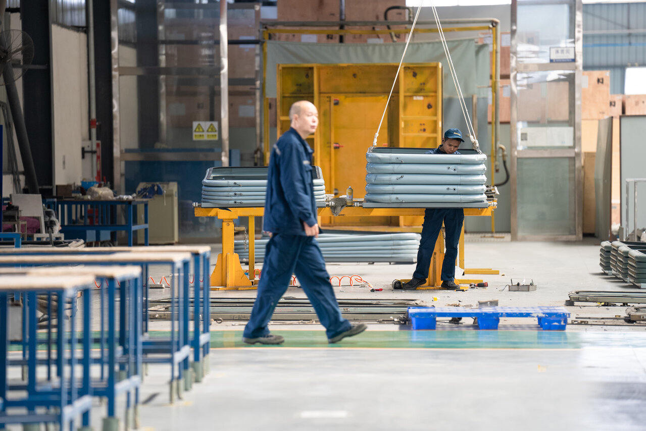 從中車成都公司出發(fā),沿著石木路走10多分鐘,便拐進(jìn)了型材供應(yīng)商成都金越交通設(shè)備有限公司(以下簡稱“金越公司”)。剛進(jìn)工廠,記者就發(fā)現(xiàn)了不同之處——公司廠房的大門非常寬大。