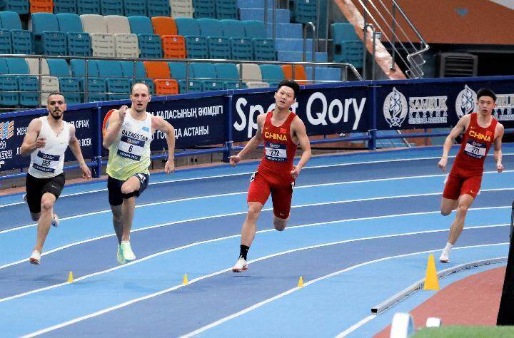 2月11日,樊添瑞(右二)在哈薩克斯坦首都阿斯塔納舉行的2023亞洲室內(nèi)田徑錦標(biāo)賽男子400米決賽中以47秒30的成績排名第三,奪得銅牌。新華社發(fā)(奧斯帕諾夫攝)