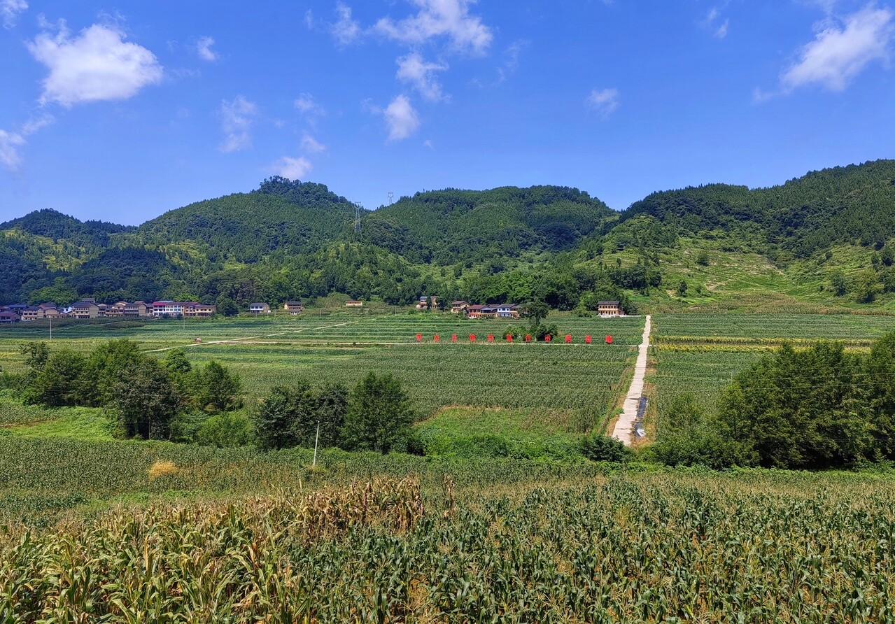 盛夏傍晚,居住在廣安市鄰水縣貴人槽的村民,三三兩兩地在農(nóng)田間散步歇涼。腳下,白水河潺潺;抬頭,銅鑼山環(huán)抱;整齊的農(nóng)田里,糯玉米和套種的南瓜正茁壯成長……