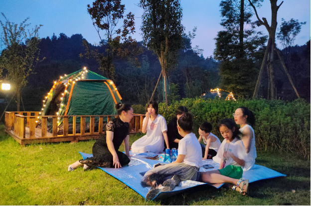 以星幕為被、草地為鋪,在石板河旁,山林之間。與家人朋友搭建屬于自己的帳篷。在露營地旁開啟一場燒烤之旅、將烤得外焦里嫩的肉串撒上調(diào)味料,在滋啦滋啦的聲響中品味夏天的味道。